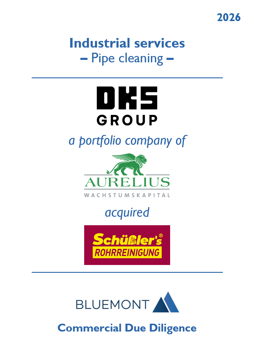 Bluemont Consulting begleitete die DKS Group im Rahmen ihrer Buy-&-Build-Strategie mit einer Commercial Due Diligence bei der Übernahme von Schüßler´s Rohrreinigungsschnelldienst. Es war die achte Akquisition der DKS Group, einem Portfoliounternehmen der AURELIUS Wachstumskapital, die als Plattform für den Aufbau einer diversifizierten, deutschlandweit aktiven Unternehmensgruppe in den Bereichen Sanierung, Instandhaltung und Reinigung von Abwasserkanälen dient. Mit der Erweiterung um Schüßler stärkt die DKS insbesondere ihr Dienstleistungsportfolio im Bereich bis zur Grundstücksgrenze und ergänzt damit ihre bestehenden regionalen Partner.